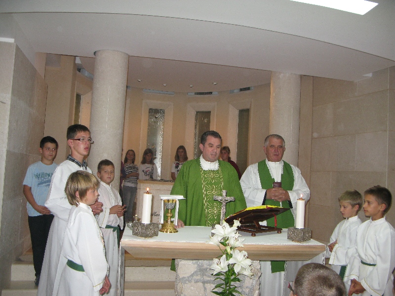U 17.00 sati započelo je zajedničko klanjanje, a svetu misu u 18.00 sati predvodio je don Nikola Berišić uz koncelebraciju don Nikole Pranjića koji je ujedno i propovijedao za vrijeme svete mise. Don Nikola se osvrnuo na evanđelje od dana koje nam donosi dva lika: Martu i Mariju, te kako svaka od njih pristupa Isusu. Marija je znala izabrati najbolji dio za koji ju je Isus i pohvalio. Ovo je poziv i nama da promislimo i mi o svojim izborima te pronađimo načina da izaberemo Isusa, onaj najbolji dio u svome životu koji nam se neće oduzeti.