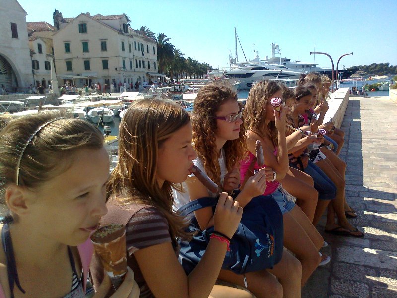 Kao nagradu za ovakav rad naša župa ih je odvela na jednodnevni izlet na Hvar 10. kolovoza 2011. Posjetili smo benediktinski samostan i razgovarale sa sestrama benediktinkama koje su nam govorile o svojoj prošlosti, o svome načinu života, te o čipki od agave koju izrađuju. Potom smo posjetili hvarsku katedralu i muzej gdje nas je dočekao mons. Slobodan Štambuk, hvarsko bračko viški biskup, i ugodno nas obradovao svojim govorom i darovima. Bile smo također i u franjevačkom samostanu. Naš vodić bio je hvarski kapelan don Pave Gospodnetić. Šetale smo rivom, osvježile se sladoledom, te bile na bogatom objedu, a poslijepodne smo okušale i kupanje na moru. Vidjele smo rijeku turista koji dolaze na Har kako bi uživali u letnim odmoru. Hvala dragom Bogu na ovako lijepom izletu kojega preporučamo svima koji nisu bili na Hvaru. Također hvala našem župniku don Nikoli Berišiću koji nam je omogućio ovaj izlet.