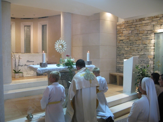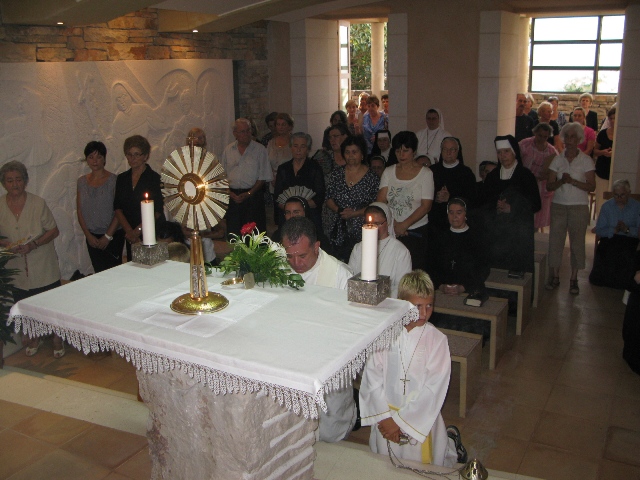 Ljetni odmor u Blatu mnogi su potražili i u svetištu bl. Marije Propetoga na njezin dan, 9. kolovoza 2012., gdje je bilo cjelodnevno klanjanje. Presveto je izložio don Nikola Berišić, župnik iz Blata, te su se kroz dan izmjenjivali svi koji su zaželjeli biti u Božjoj blizini. U 18.00 sati započelo je zajedničko klanjanje, a sveta misa u 19.00 sati koju je predvodio don Denis Barić, svećenik Zagrebačke nadbiskupije i profesor na Katoličkom bogoslovnom fakultetu u Zagrebu. Na svetoj misi koncelebrirao je i don Nikola.