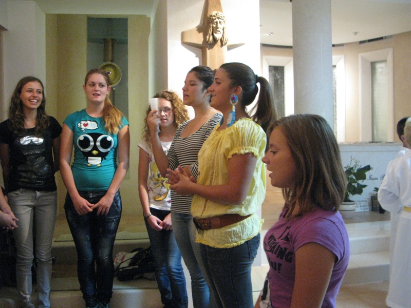 Za vrijeme euharistije pjevao je župski zbor mladih Stope. Ove večeri svoj prvi nastup u Stopama imale su i naše tri nove članice: Ema Šaparović, Jelena Šeparović i Ivana Simoni koje su punih osam godina pjevale u dječjem župnom zboru Stope.