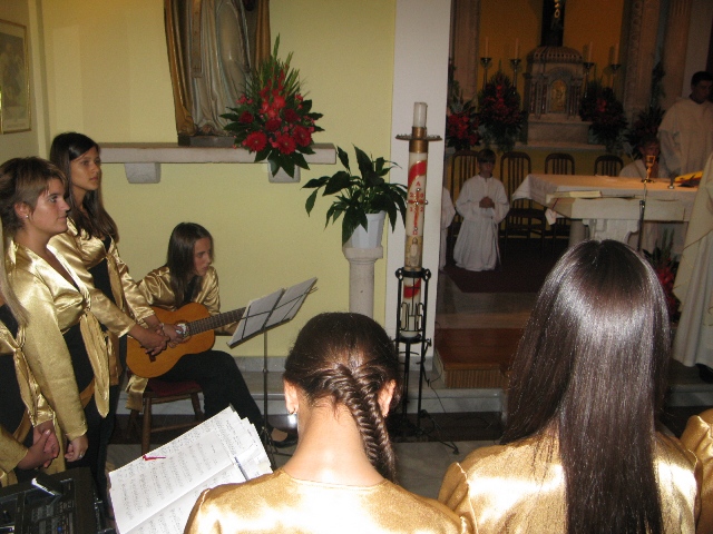 Ovo je naš prvi nastup, naše prvo putovanje nakon ljetne stanke uz vrlo pozitivne dojmove. Svetu misu predvodio je don Marin Lučić, svećenik Dubrovačke biskupije. U svojoj propovijedi don Marin nam je govorio o Božjoj riječi koja je kao dvosjekli mač, i koja prodire u naše srce koje je od svega podmuklije. Mnogi se povode za onom poznatom uzrečicom: Slijedi svoje srce, a don Marin nam kaže kako trebamo slušati ne samo svoje srce, nego prvenstveno Božju riječ i povoditi se za njom. Uz don Marina svetoj misi je koncelebrirao i župnik župe sv. Križ, dominikanac fra Mihael Mario Tolj, koji nas je lijepo pozdravio i zahvalio na dolasku. Za oltarom su prisustvovali i dominikanski redovnici.