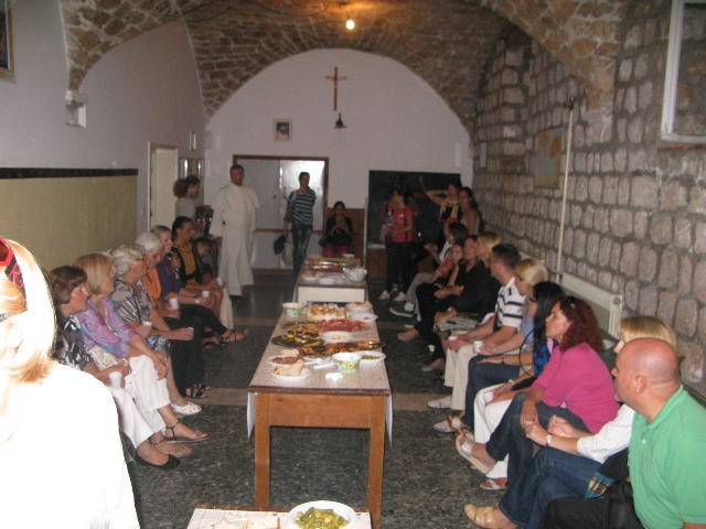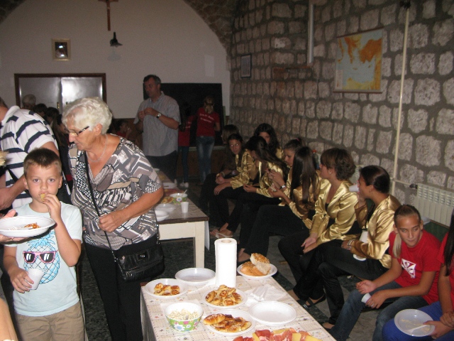 Župna crkva je bila puna iako nije jako velikih dimenzija. No, nakon srdačne dobrodošlice, lijepoga prijema i uspješnog koncerta, doživjeli smo veliko srce svih onih koji su nas primili u ovoj župi. Djeca župnoga zbora cijelo vrijeme su bila uz nas i svojom prisutnošću pokazali da se raduju što smo zajedno. Mješoviti župni zbor priredio nam je sve što je potrebno za ugodno i bogato druženje kod blagovanja. Svi njih animirala je njihova voditeljica gospođa Marija Brčić, te gospodin Tomislav Marinović koji je Stopama uručio i zahvalni dar: umjetničku sliku crkve sv. Križa koju je izradila akademska slikarica Ivana Jovanović Trostman.