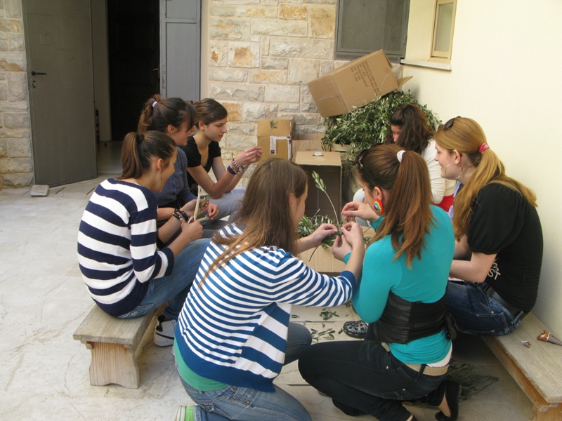 Ove godine Stope su se potrudile i naučile plesti maslinove grančice prema starinskom običaju. Bilo je zanimljivo, ali i ne baš tako lagano pustiti svoje prste da vješto isprepliću listiće maslinovih grančica. Naše skromne uratke darovali smo za potrebe bližnjih, te se nadamo da ćemo dogodine isplesti koju grančicu više.