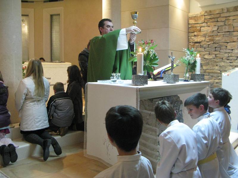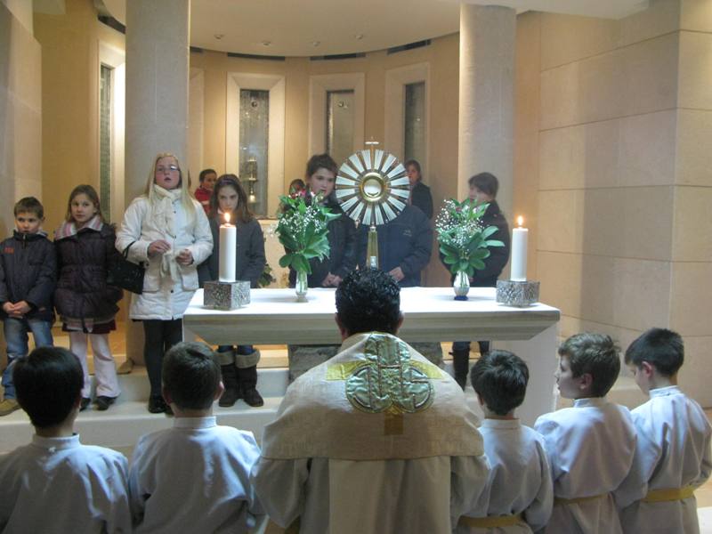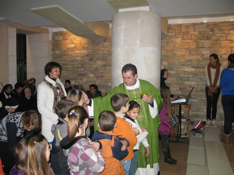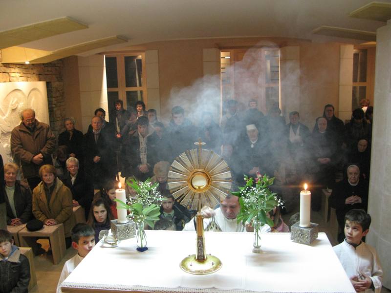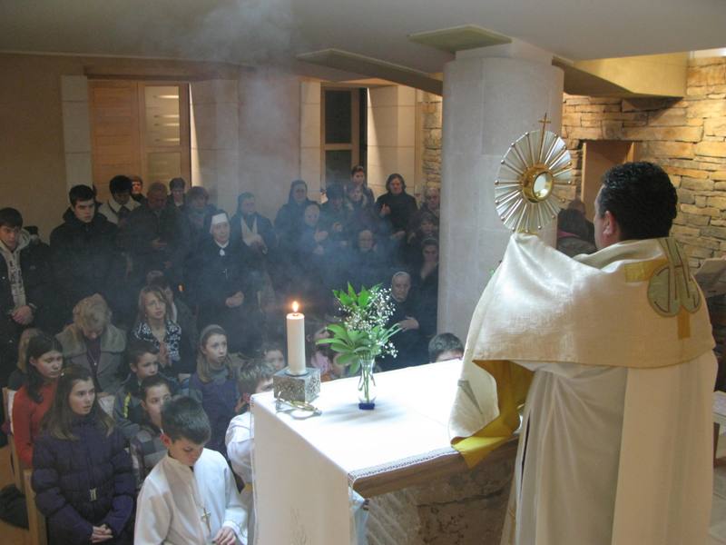 Ovim riječima započeo je don Nikola Berišić, župnik, svoju propovijed u svetištu bl. Marije Propetoga 9. veljače 2012. Blaženica je posvetila Kristu Kralju cijelu svoju Družbu sestara Kćeri Milosrđa, svu djecu i sve nas. Velika je njezina ljubav prema svima. Svoju ljubav pokazali su i svi oni koji su ove večeri bili u svetištu jer ih nije omela ni studen, ni bilo koja druga obaveza. Došli smo svi zahvaliti Blaženici i moliti njezin zagovor kod Boga. Don Nikola nas je također podsjetio na svetu Skolastiku čiji blagdan danas slavimo. A sve ovo zajedništvo bilo je kao uvod sutrašnjem slavlju, tj. blagdanu bl. kardinala Alojzija Stepinca kojeg je naša Blaženica i osobno poznavala, te u jednom svom pismu ističe kako mu je zahvalna jer je njezinim sestrama bio kao otac. Mirno je trpio znajući da Bog prepušta sve za naše dobro.