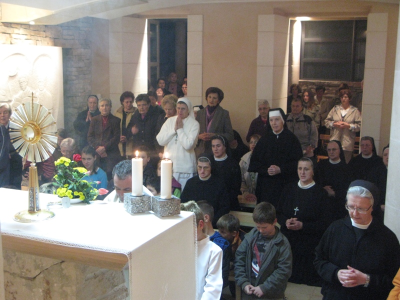 Presveto je izložio župnik don Nikola Berišić u 9.00 sati u prisutnosti sestara i djece iz vrtića Marija Petković. Zajednički sat klanjanja započeo je u 17.00 sati, a završio je sa svetom misom u 18.00 sati koju je predvodio župnik don Nikola. U svojoj propovijedi župnik nam je posvijestio primjer bl. Marije Propetoga koja je Božju riječ vršila ali i prenijela na život svoje zajednice. Prema njezinim riječima nije dovoljno da čovjek ne griješi već se treba truditi vršiti djela milosrđa. Blaženica nas također poziva na poniznost koja znači govoriti istinu o sebi. Treba se paziti oholosti i to one prikrivene.