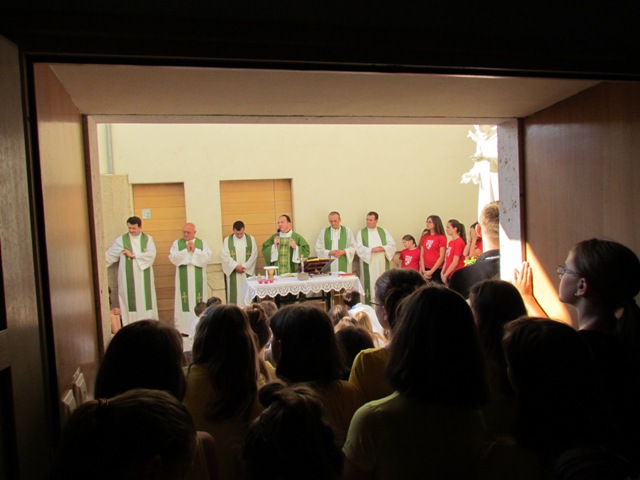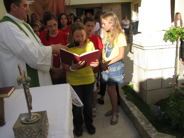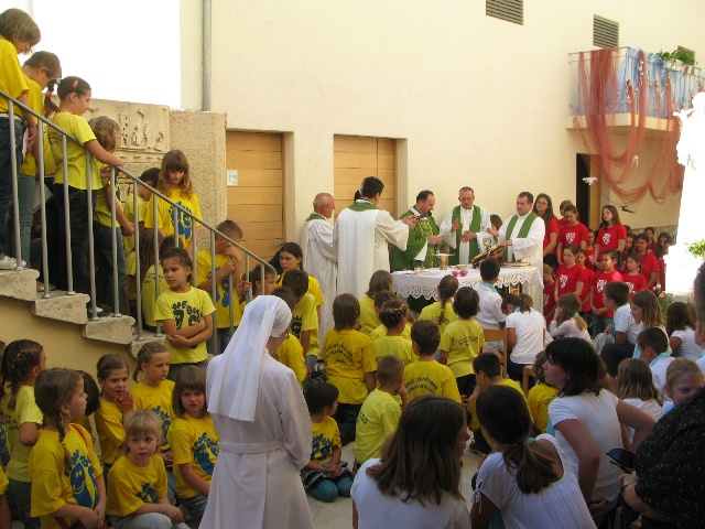 U 18.00 sati slavljena je sveta misa u dvorištu samostana i svetišta, a predvodio ju je don Petar Palić, generalni vikar Dubrovačke biskupije uz koncelebraciju već spomenutih župnika, te don Nikole Berišića, Korčulanskoga dekana i blatskog župnika i don Ivice Pervana, župnika iz Boninova.