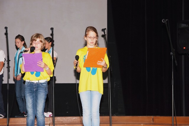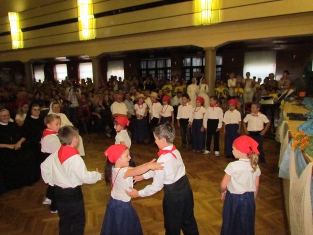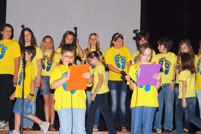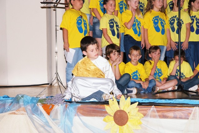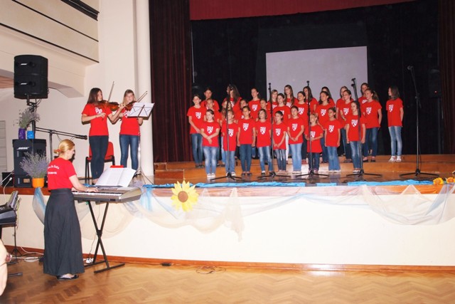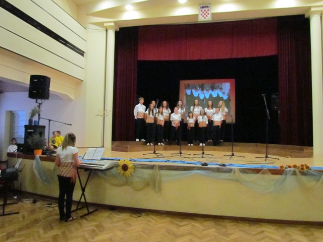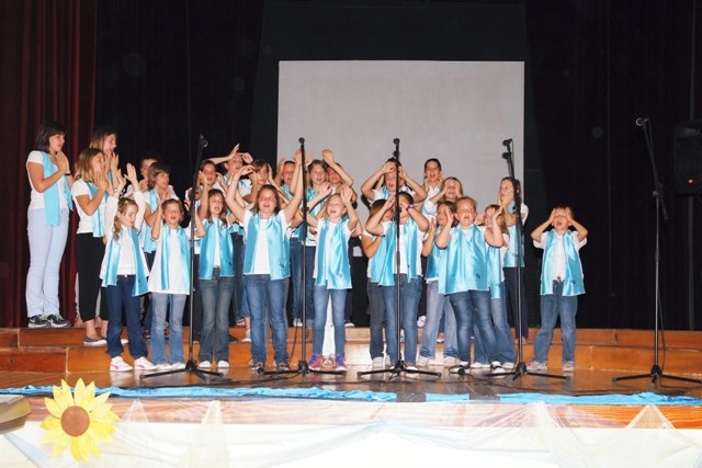 Na svetoj misi svi zborovi pjevali su zajedno već unaprijed predviđene i pripremljene pjesme, a sudjelovali su i u liturgisjkim čitanjima. Po završetku euharistije svi su se uputili u prepuni Dom kulture gdje je svaki zbor otpjevao po dvije pjesme. Pogram u dvorani otvorili su mali vrtićani koji su odmah podigli publiku na noge izvodeći Kotiljun, tradiocionalni blatski narodni ples. Između pjesama mogli smo preko računalne prezentacije upoznati osnovne podatke o svakome zboru, a o svemu tome su nas izvijestili mali voditelji programa.