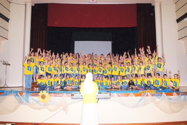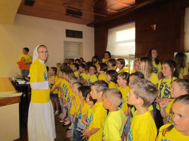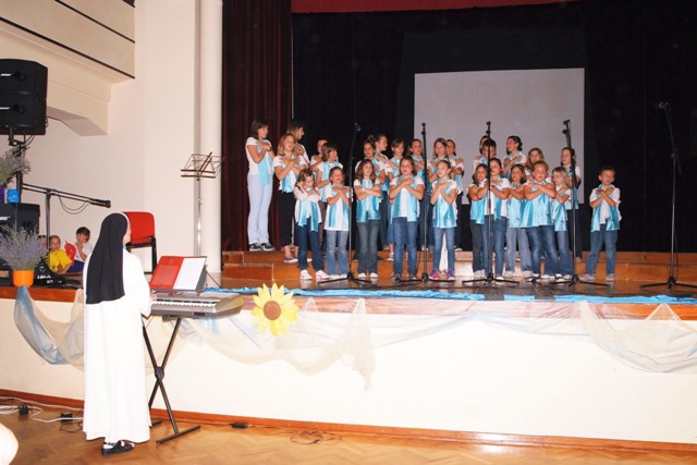 * Dječji župni zbor Lanterna iz župe Sv. Marka iz Korčule i njihova voditeljica s. Blaženka Rudić.
