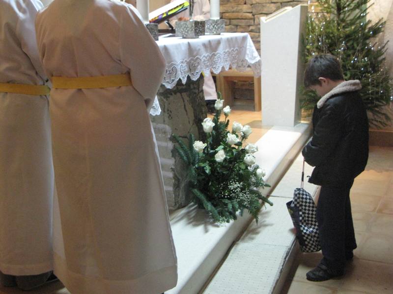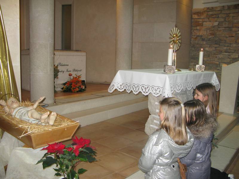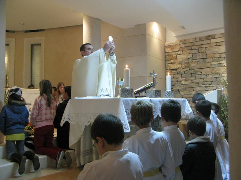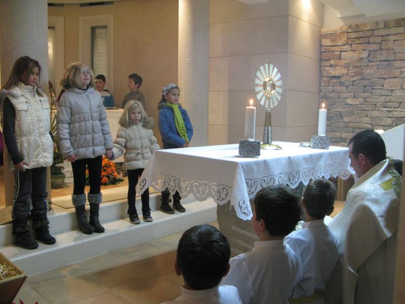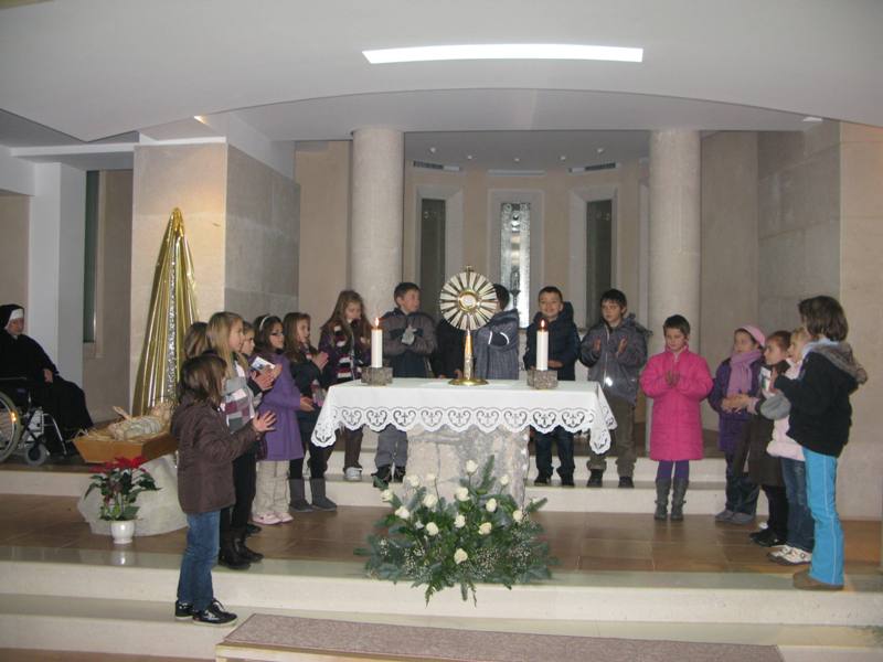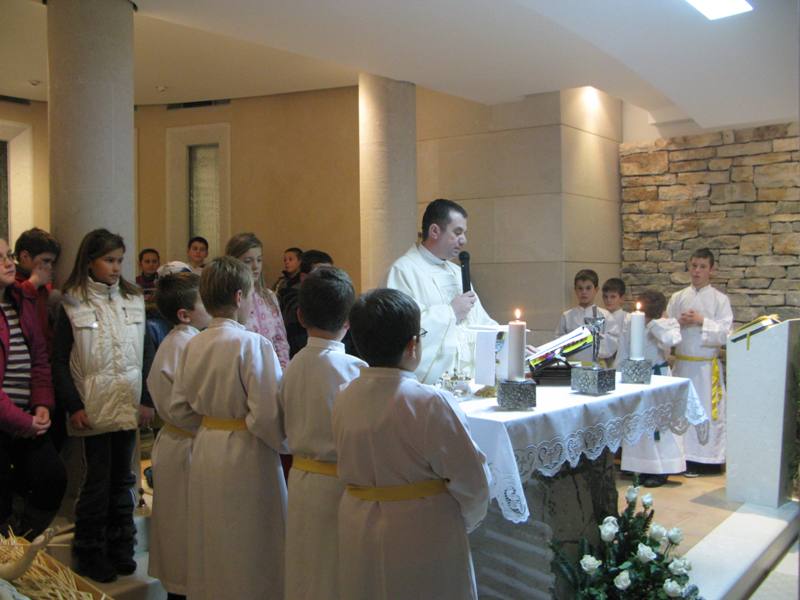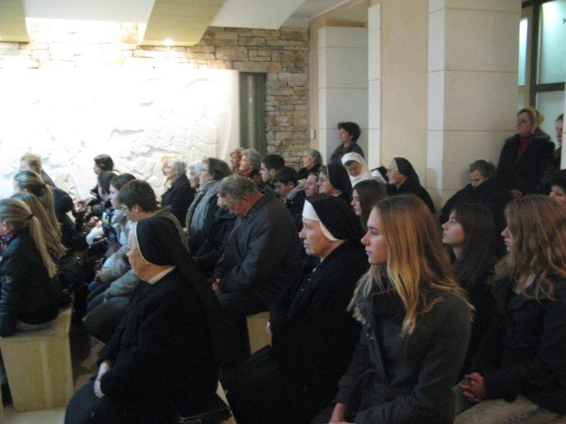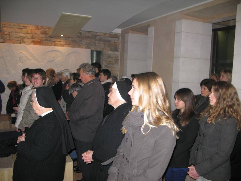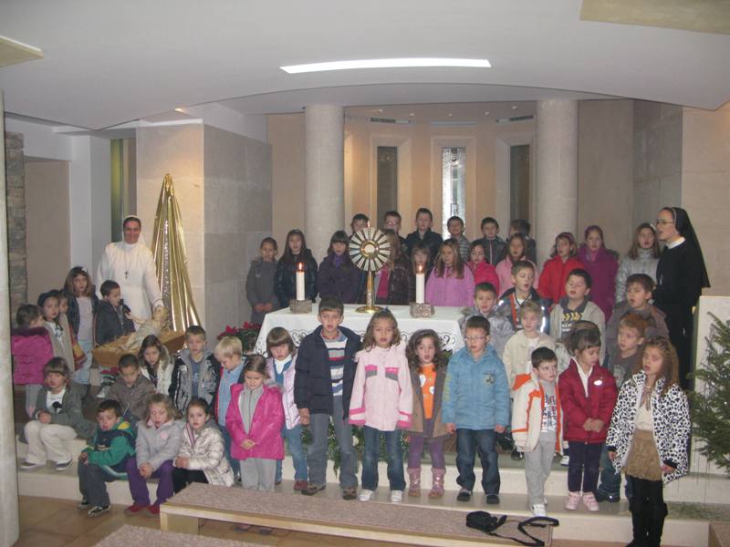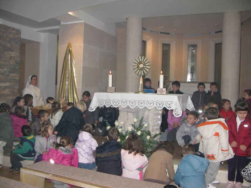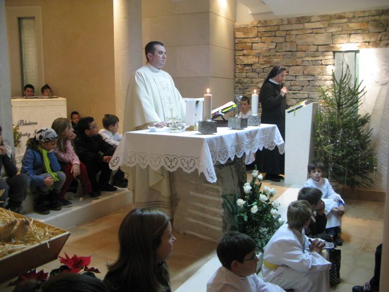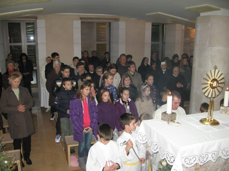Presveto je izložio župnik don Nikola Berišić u prisutnosti sestara Kćeri Milosrđa, djece iz vrtića Marija Petković, te nekoliko vjernika. Potom su na molitvu pristizali drugaši iz osnovne škole. Kroz dan navraćali su svi oni koji su imali potrebu zahvaliti Bogu i podijeliti s njime svoje brige i težnje. U 17.00 sati započelo je zajedničko klanjanje, a potom je uslijedio blagoslov s Presvetim i sveta misa koju je predvodio don Nikola. Svetište se ispunilo prvopričesnicima, krizmanicima i mnogom drugom djecom i odraslima koja su navratila ove večeri iz pobožnosti i vjere. Župni zbor mladih, Stope, predvodio je pjevanje pod svetom misom, a svi su radosno sudjelovali. Župnik nas je u svojoj propovijedio podsjetio na božićna razmišljanja, u duhu naše Blaženice, koja nam pomalo odmiču, ali zapravo zauvijek trebaju naći mjesta u našim srcima. Po Božiću Bog nam je pokazao svoju ljubav, a ljubav sve može i ništa joj nije teško. Evanđelje od dana uputilo nas je na obale Galilejskoga jezera gdje smo svjedoci Isusovog poziva učenicima koji ima stvarateljsku snagu. Slijediti Isusa postaje djelo milosti jer Isusovi učenici trebaju napustiti sve. Blažena Marija nam treba biti primjer u takvom nasljedovanju Isusa. Napsutila je sve, a ono što je Isus propovijedao, za nju je to postala životna zapovijed. Isusa kojeg je susrela, dijelila je svima. Bog i nas poziva, a za život nam daruje potrebne milosti. Slušajmo ga u tišini svoga srca.