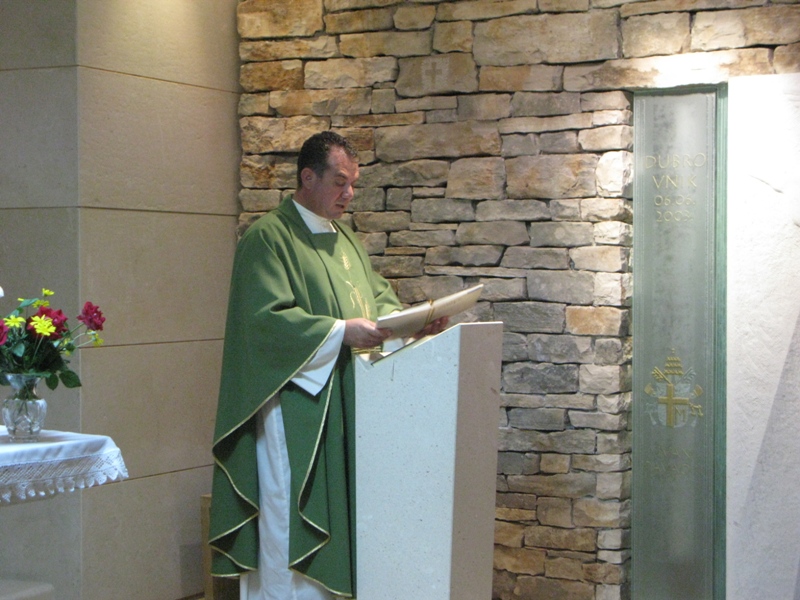 Klanjanje je završilo svetom misom koju je predvodio don Nikola, a u svojoj propovijedi napravio je, prema običaju, jedan sažetak svih propovijedi i riječi koje su se izgovorile o Blaženici tijekom ovogodišnje devetnice u Blatu, pozvavši nas da svojim djelima pristupimo ovim riječima koje trebaju naći život u nama. Posebno je istaknuo misao našega biskupa preuzvišenog Mate Uzinića koji kaže da Isus i u ovom vremenu kao i u prošlom treba za svoja djela ljude, a ne stvari. Ovo je bio poticaj na razmišljanje svima nama u svetištu: Koliko želimo i molimo za duhovna zvanja?! U ovome smislu zahvaljujemo dobrom Bogu na daru duhovnoga zvanja djevojke iz Vele Luke, Marije Oreb, koja se ovo ljeto odazvala na Božji poziv i pridružila sestrama Kćeri Milosrđa. Neka je dobri Bog prati svojim zagovorom, a mi podržimo svojim molitvama.