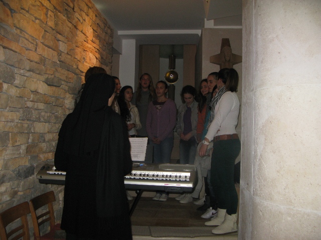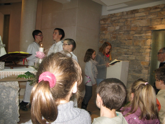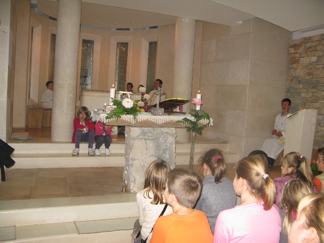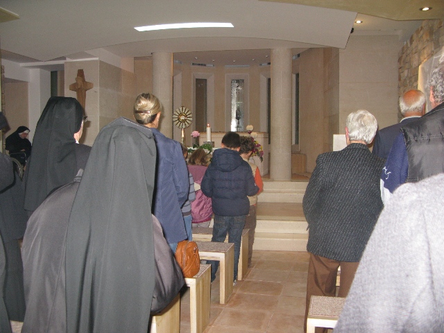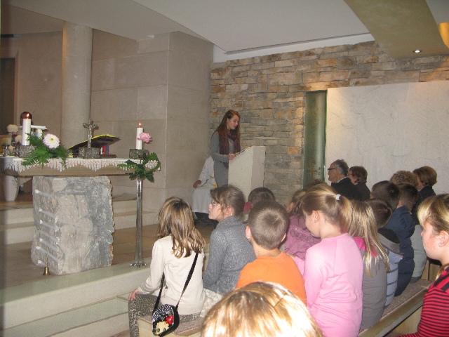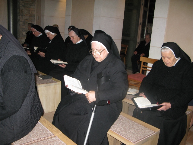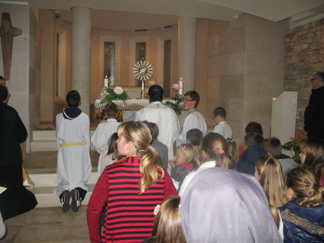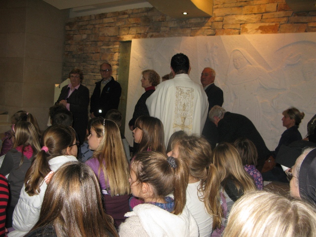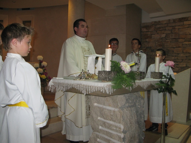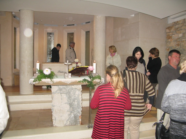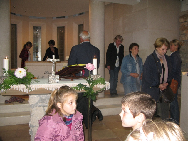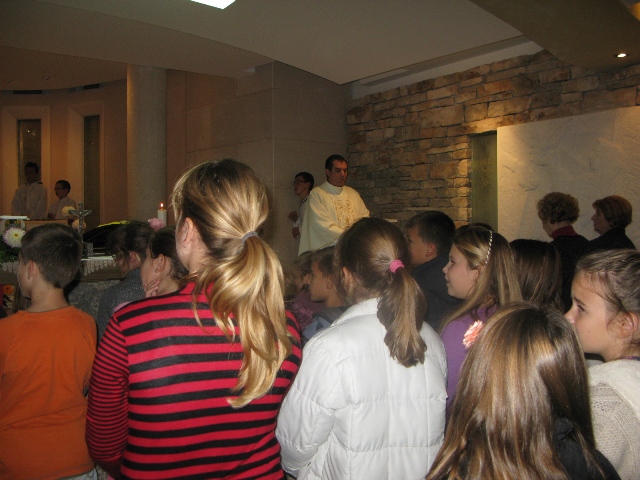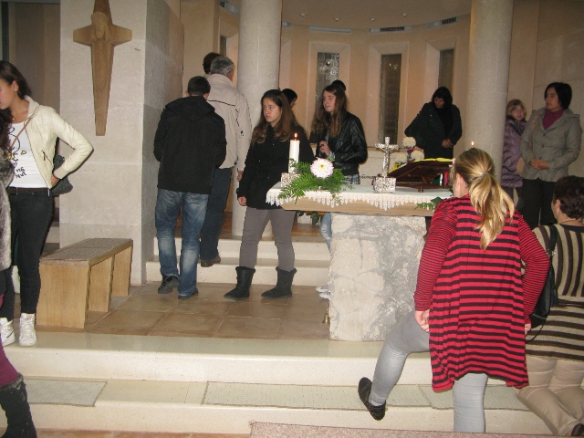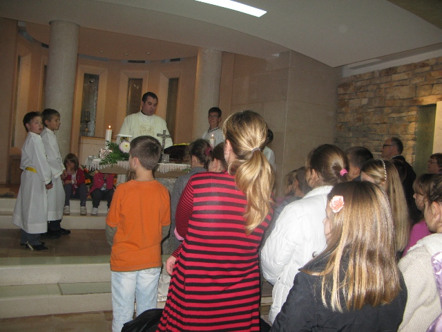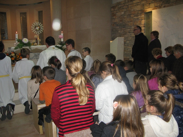 U 17.00 sati imali smo zajedničko klanjanje pred Presvetim i večernju molitvu časoslova, nakon koje je uslijedio blagoslov s Presvetim i sveta misa, a koju je predvodio župnik, don Nikola Berišić. U svojoj propovijedi don Nikola nam je pred oči stavio primjer vjere bl. Marije Propetoga. Dok su svi bili uplašeni i ustuknuli pred nevremenom i olujom u Babini, te se posakrivali u kuće, bl. Marija je s pouzdanjem u Boga utišala oluju na uzburkanom moru. Ovaj primjer služi svima nama za ispitati se, u Godini vjere, kako mi možemo probuditi svoju vjeru?! Samo vjerujući, naša vjera raste.