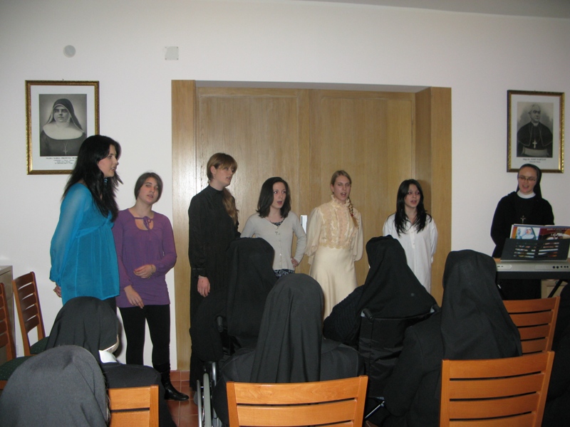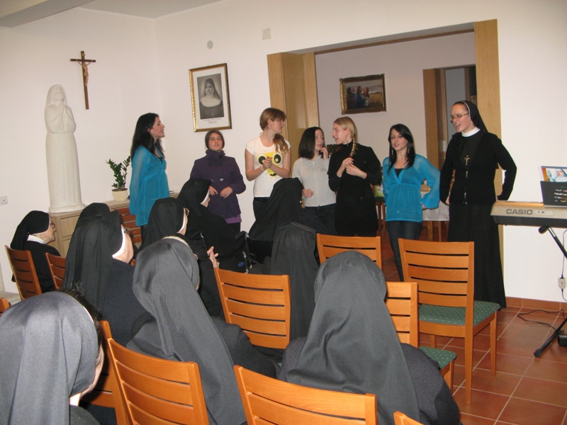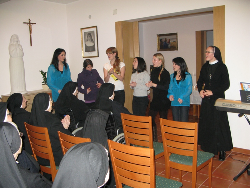 U veljači 2009. časne sestre Kćeri milosrđa imale su duhovnu obnovu. Tom prigodom posjetile su ih Stope i izvele im program koji su za njih priredili. Bila je to predstava o Bl. Mariji Propetoga Isusa koja je kao djevojka pomagala u Blatu one koji su bili najpotrebniji pomoći. Starije sestre, koje su Majku osobno poznavale, prisjtile su se njezina primjera života i poželjele da koja djevojka iz Stopa uistinu pođe stopama bl. Marije. Dao Bog!