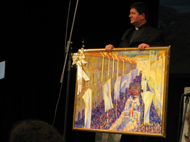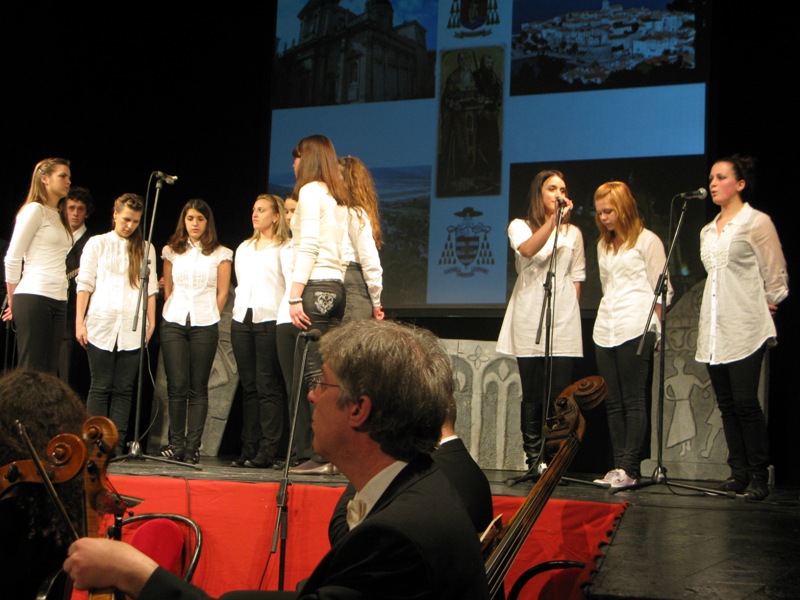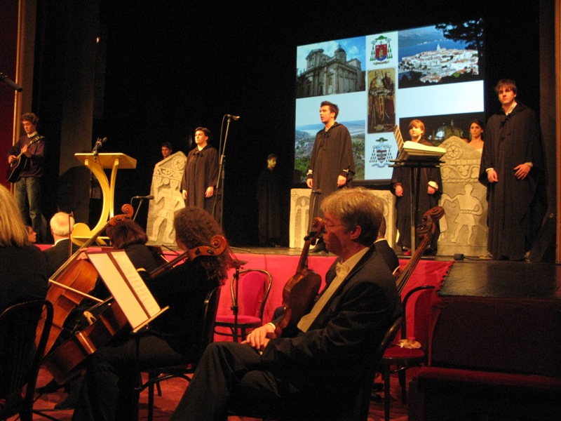U Katedrali je slavljena sveta misa za sve obitelji, a koju je predvodio don Stanko Lasić pozvavši sve roditelje da pred svojom djecom svjedoče svoju međusobnu bračnu ljubav jer djeci nije dovoljna samo roditeljska ljubav prema njima. Stope su svojim pjevanjem obogatile slavlje, te nam svjedoče o ljepoti i veličanstvenosti ovoga događaja i napose osjećaja koji se rode kad pjevate u prekrasnim prostorima dubrovačke katedrale. Potom je uslijedila svečana akademija u Kazalištu Marina Držića kojoj su nazočili mons. Mate Uzinić, te zadarski nadbiskup mons. Želimir Poljić i mnogi ugledni uzvanici od kojih gradski čelnici i svećenici. Ističemo kako su ovom događaju prisustvovali i naš župnik don Nikola Berišić, te načelnik općine gosp. Ivo Gavranić. U ime Korčulanskog dekanata, tancarica iz Blata, Marija Petković predala je novome biskupu na dar nekoliko korisnih „suvenira“ našega podneblja koji svjedoče o duhovnom i kulturnom bogatstvu našega otoka. Na akademiji su sudjelovali mnogi izvođači od kojih izdvajamo Simfonijski dubrovački orkestar, klape, recitatore, grupe mladih, te naše Stope koje su izvele pjesmu Marijo Propetoga Krista, s kojom smo željele predstaviti naše Blato i osobu bl. Marije Propetoga koja je na ponos svima nama.