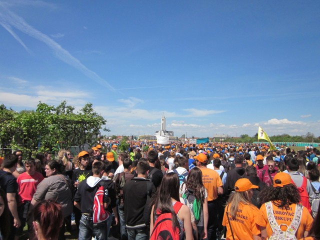 Kad smo stigli u Sisak, program je već bio započeo, a rijeke mladih su pristizale sa svih strana. Središnje slavlje bila je euharistija koju je predvodio zagrebački nadbiskup Josip Bozanić. Nakon svete mise uputili smo se u Grubišno polje, župu gdje smo bili smješteni. Ugostio nas je župnik don Većeslav Magić sa svojim vjernicima. Povezali smo se s njima u prijeteljstvu te se nadamo da će nas posjetiti u našem Blatu. U nedjelju smo sudjelovali na svetoj misi. Predstavili smo našu župu, Stope su pjevale i održale mali koncertić, a nakon toga smo se družili kod zajedničkog stola.
