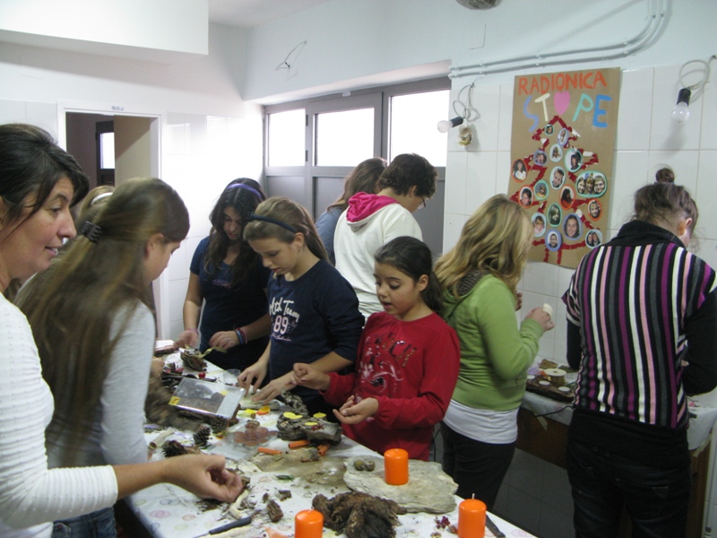 Dobrotvorna dječja radionica Stope pripremila je i ove godine svoja iznenađenja. Marljive dječje ruke i mašta, uz pomoć „tete“ Milene, Meri, učiteljice Marije i „časne“ Danijele, izradile su nekoliko desetaka adventskih vijenaca.